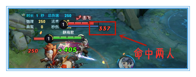 而当他的一技能同时命中两名目标时,他对刘邦造成的伤害就只剩337。