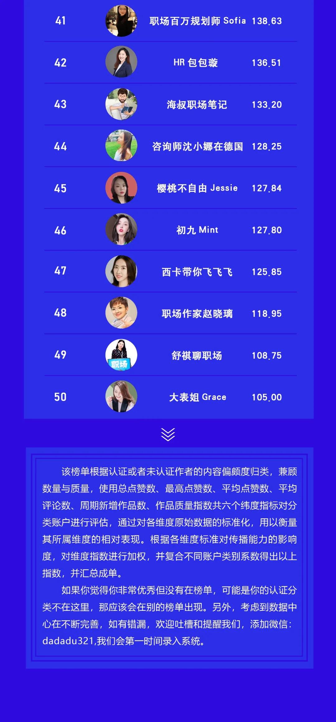 第一:认证为职场类的博主现在很少,也就是几百个,好好做内容的,其实也就是几十个。所以我们做排版的时候,都很担心能不能凑够50个,因为这个类别,实在太少了,这是一个很奇怪的现象;