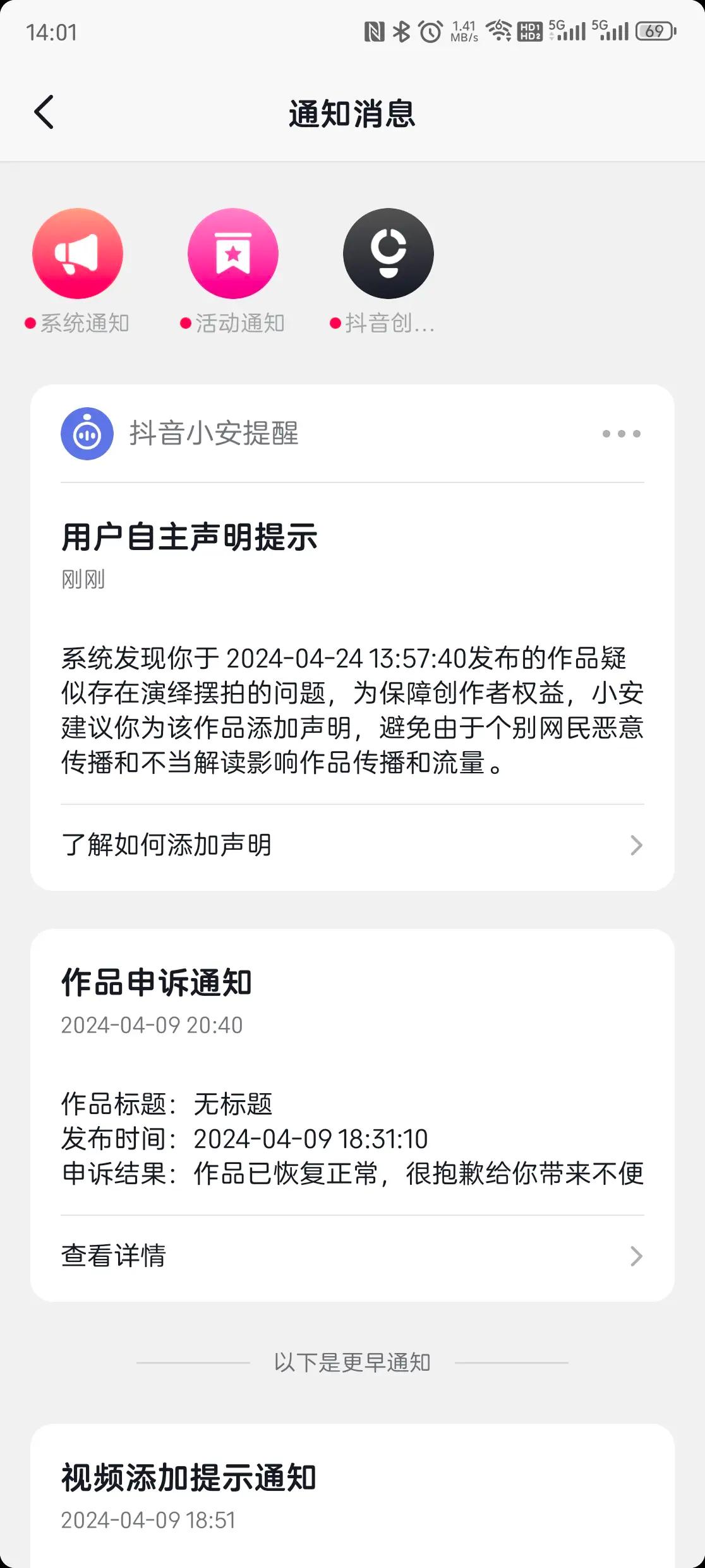 抖音创作者中心-发布作品-发布视频-发文助手-添加声明-选择合适的声明内容