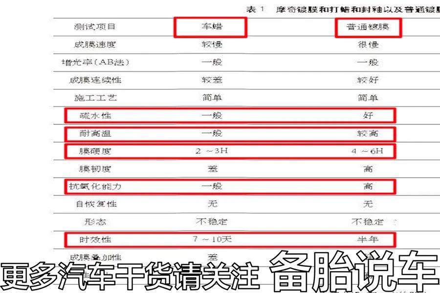 可以看到镀膜在疏水性、耐高温、膜硬度、抗氧化能力及时效性上面都是比车蜡要好一些。