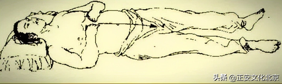 2. 练功前一般要求解开衣裤,以直接揉摩为宜。姿势第一至第八节,以正身仰卧为主。