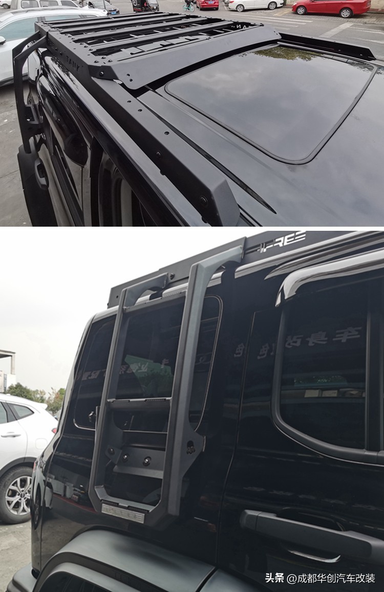 长城很好的给中国的硬派SUV市场做了一个好开端,坦克300的一上市,就受到绝大用户的喜爱,也应运而生了许多官改版本,如枫林铁骑、游侠、赛博、边境等,而汽车后市场也有许多外观套件可以选择,这一点作为国产车来说,绝对是历史性突破。打破了国产车后期无改装件可升级的尴尬境地。其中铁骑版走的就是硬朗的越野风格了。前脸,轮眉的改动比较大,采用了复古造型的前脸,外观看上去硬朗不少。内饰和普通的坦克300保持了一致。总的来说枫林铁骑更像是坦克300的越野升级版,相当于你买了一台一落地就可以出去玩的合法上路越野车。本期给大家分享的改装案例是坦克300升级改装铁骑外观套件,根据使用需求后可还可以对底盘进行升高和强化,使其可以完全满足你任何场境下的使用。