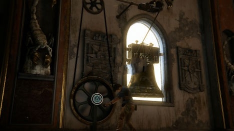 一旦四个钟声已经响起,你需要到达塔顶完成拼图。头抬起了过场后出现的楼梯,然后用你的绳子穿过摆动到塔的另一侧。