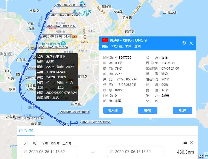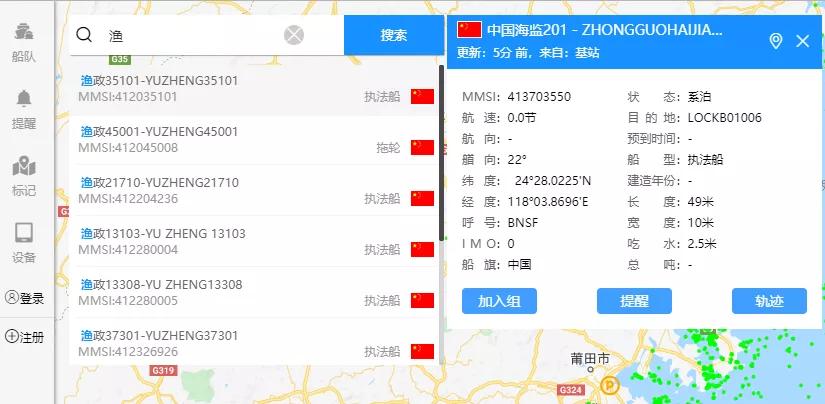 例如:看到当前厦门周边所有执法船的位置,那就可以在船舶筛选中只勾移过【执法船】,这样就可以看到厦门周边所有执法船的当前动态了!