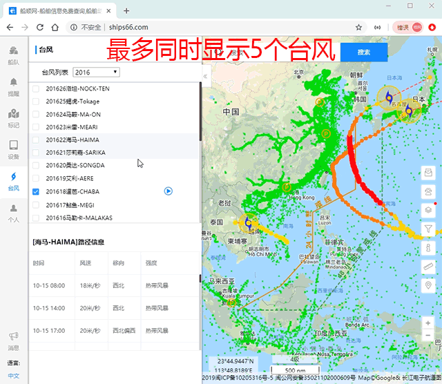 自主选择时间段回放船舶航行轨迹,完整重现船舶航行过程,更有详细的轨迹点,供大家查看!