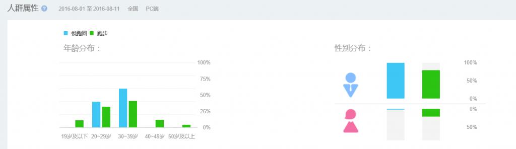 用户属性以男性为主,集中分布在20-40岁之间,其中30-39岁壮年为主力军,占比60%,20-29岁其次,占比40%。这也与跑步运动中最顶级的马拉松赛事性质相关。悦跑圈在跑步这一块,尤其是马拉松赛事上下了很大功夫。对于这种富有挑战性的运动项目,向来男性比较强势。