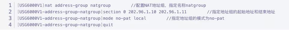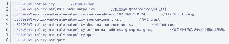 1、NAT No- PAT:类似于Cisco的动态转换,只转换源IP地址不转换端口,属于多对多转换。