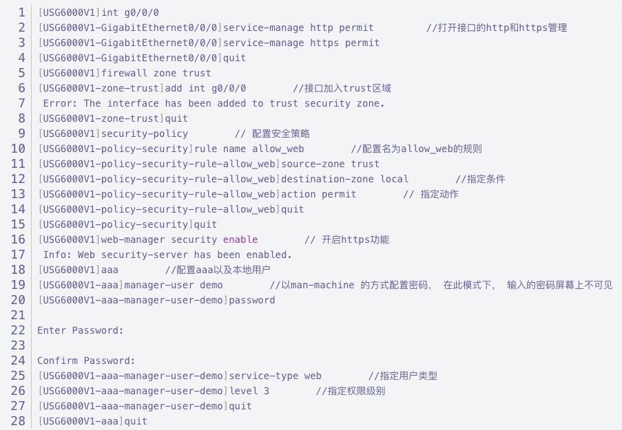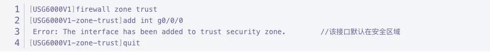 (5)将防火墙接口GigabitEthernet0/0/0加入安全区域