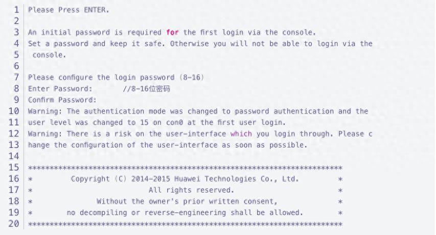 (9)测试从telnet登录防火墙,首次登录需要修改密码,然后再重新用新密码连接