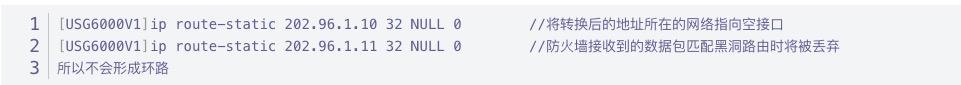针对转换后的全局地址(NAT地址组中的地址)配置黑洞路由