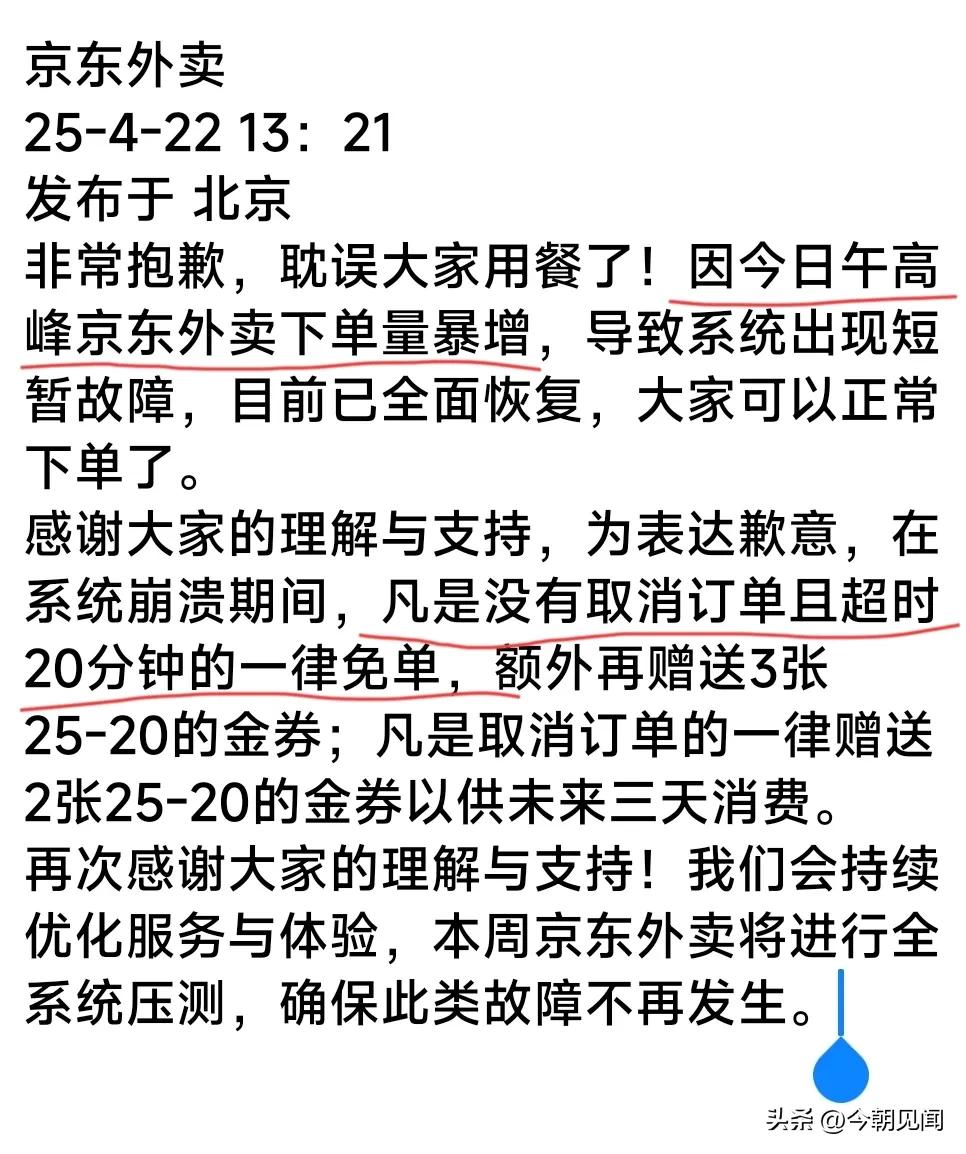 京东外卖崩了!京东已回应,商家懵圈:系统已接单,实际没收到!