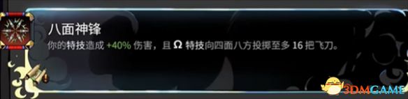 你的特技造成+40%伤害,且Ω特技向四面八方投掷至多16把飞刀。