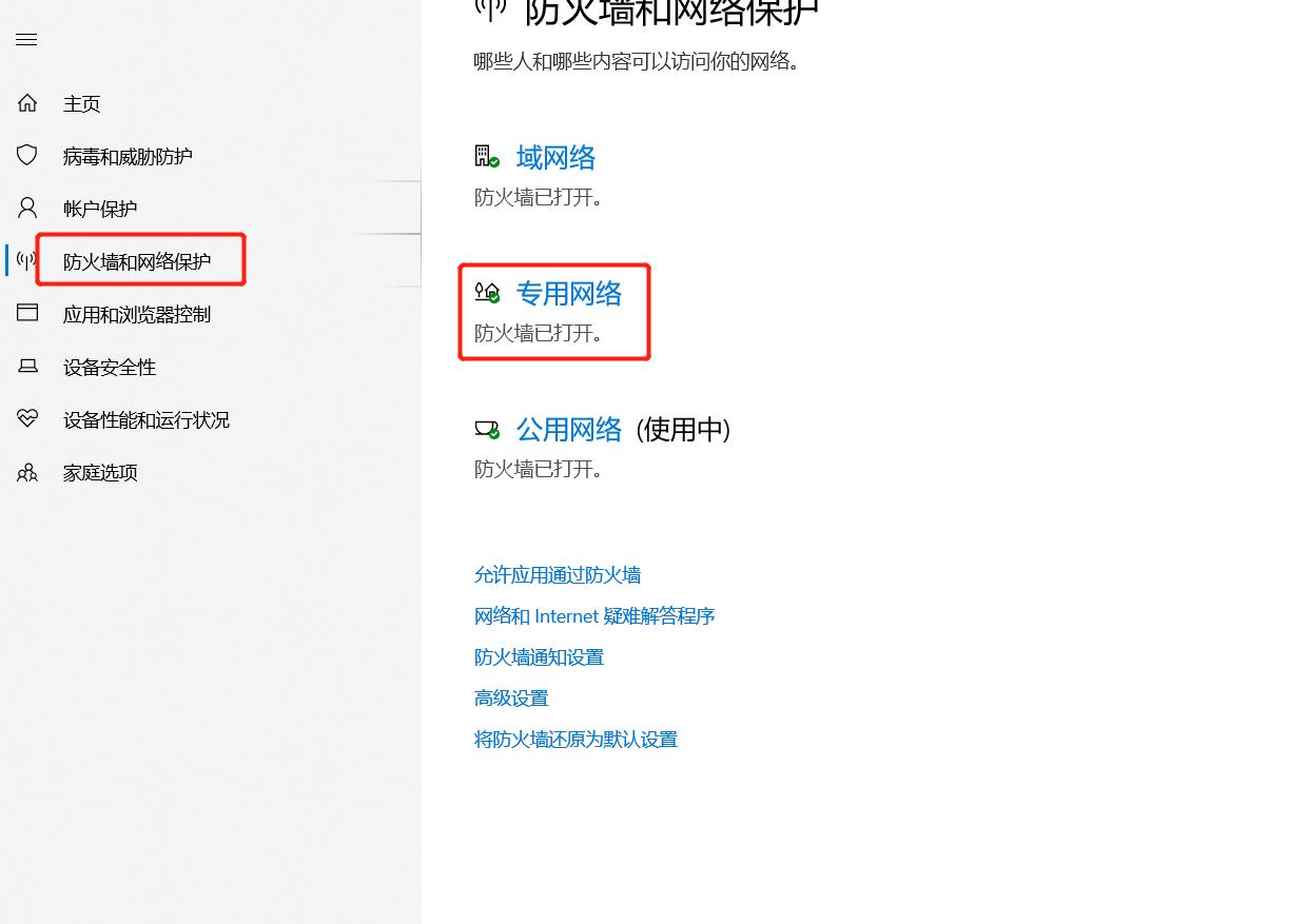 - 选择“专用网络”,接着点击选择关闭防火墙。