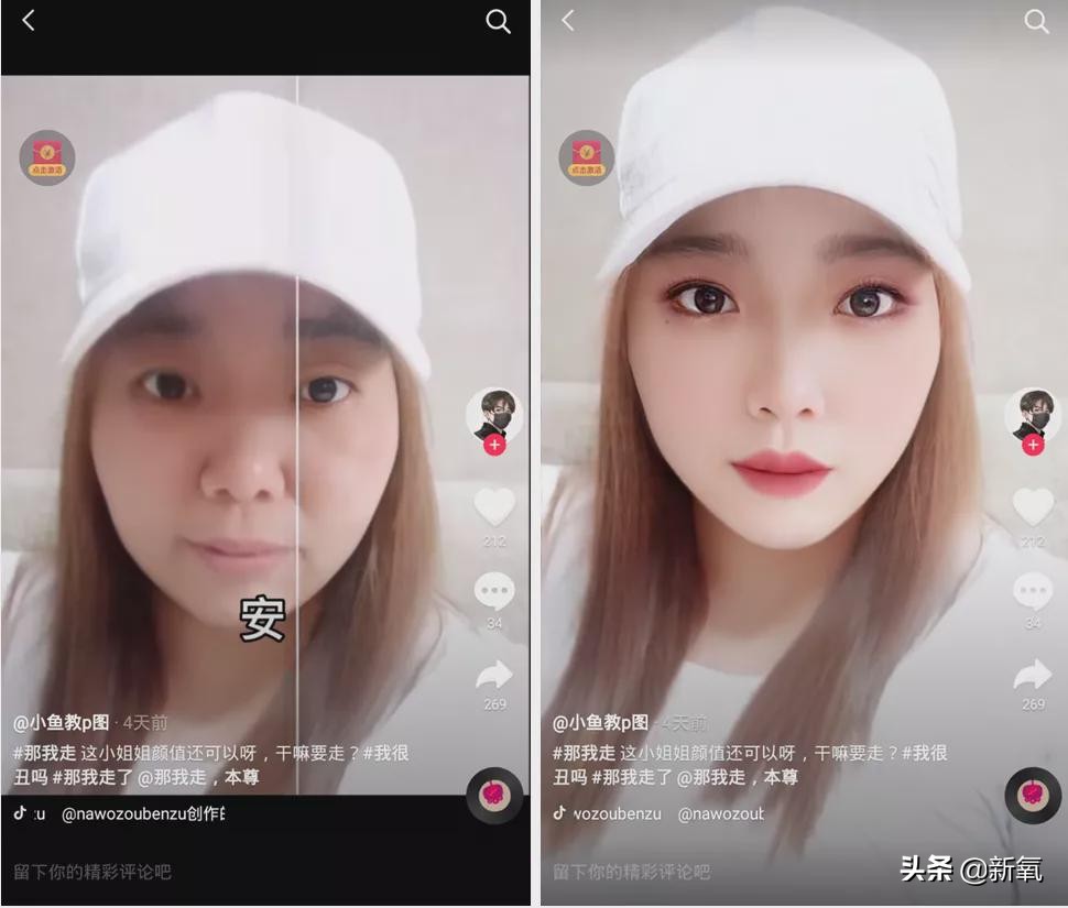 颜值网红用梗演起了丑女变美人的反转小剧场。