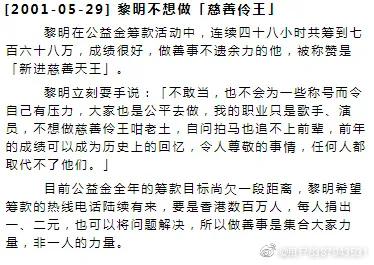 黎明低调表示不想做“慈善伶王”
