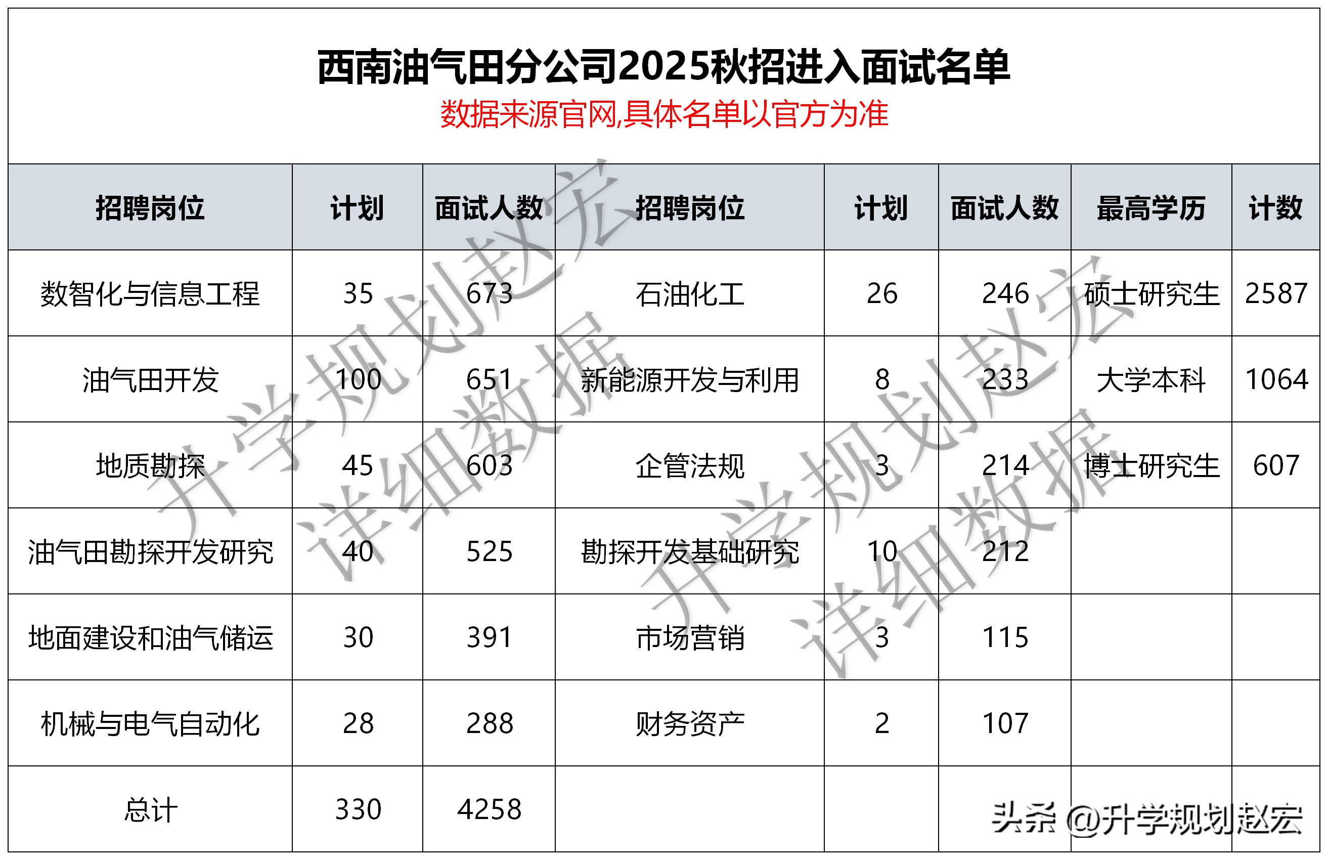 中石油西南油气田2025秋招计划330人,进面试4258人,竞争太大了