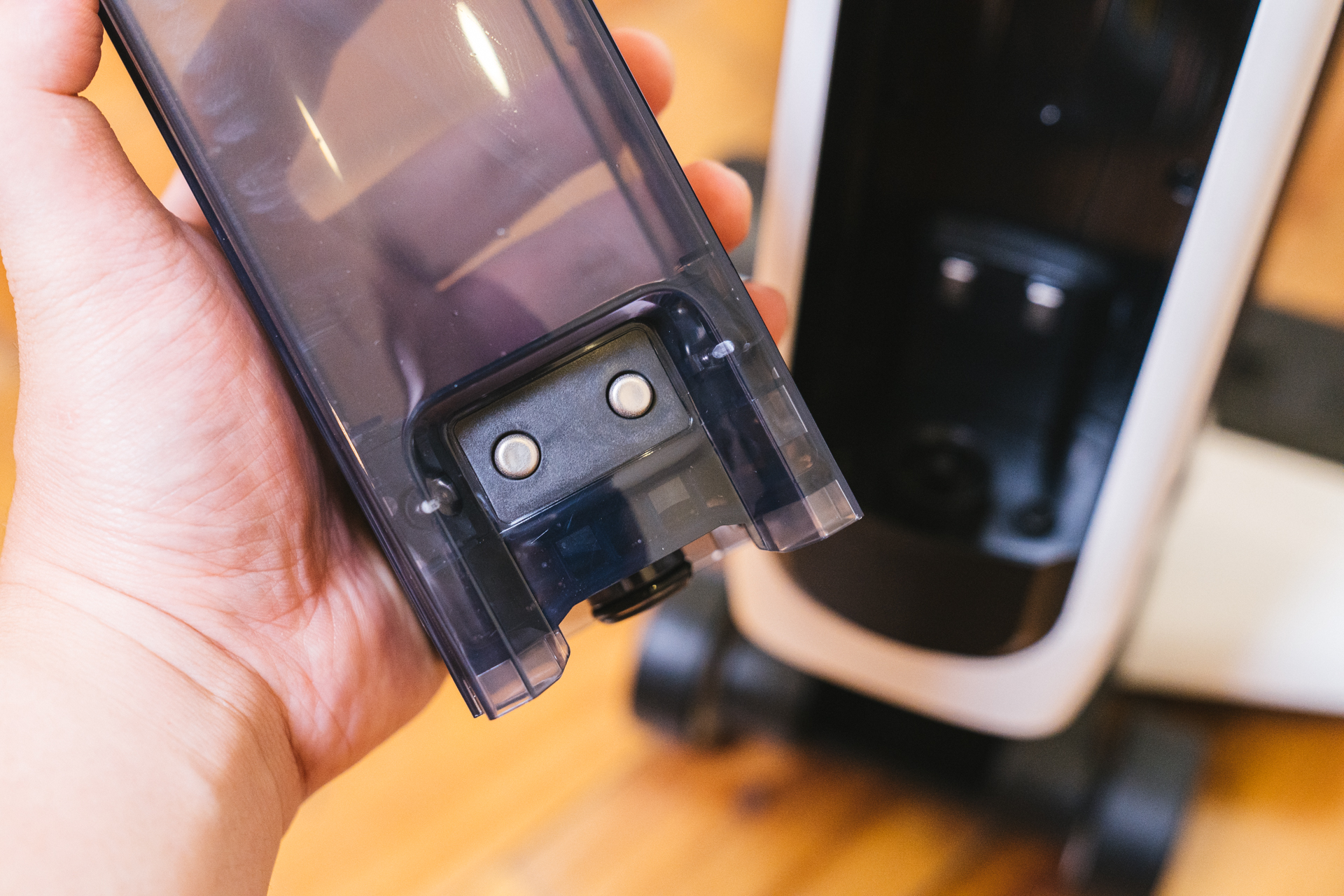 污水箱采用了抗菌材质设计,在抗菌和除异味上都有不错的效果,不用担心污水箱成为“二次污染”的滋生地。清洁过程中产生的污水废水,都会被收入这个污水箱中,这也是和一般的吸尘器的区别最大的地方:不再是只能收集干垃圾,而是干湿垃圾统统都能收集起来。