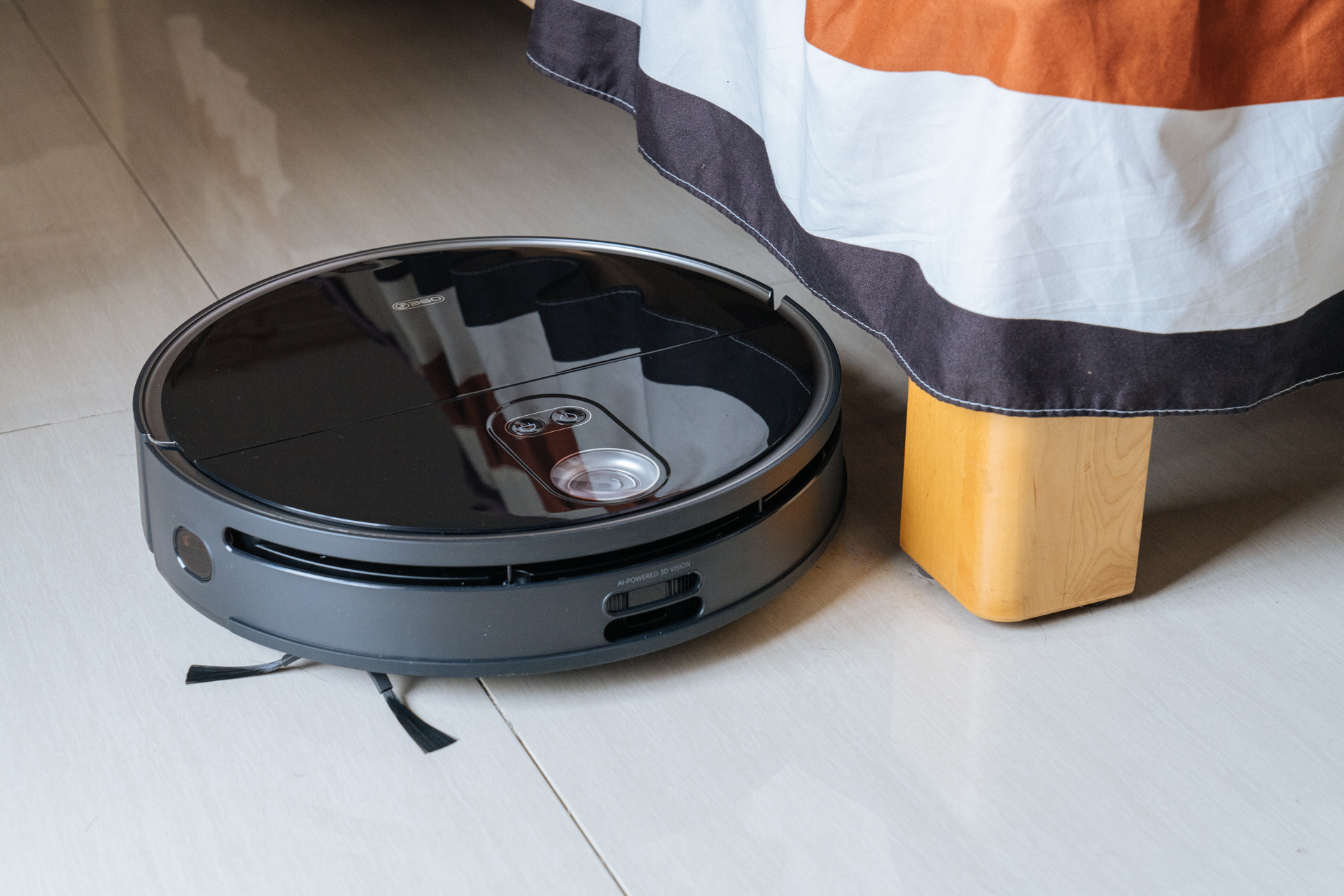 前面提到添可 芙万2.0的滚刷贴边设计,在于沿着墙边衣柜边进行清洁的时候就体现出优势了,可以不留死角的清洁。以前使用扫地机器人对于边角清洁问题,真的是不太满意,总是会出现盲区。现在在房间可以结合添可 芙万2.0进行沿边清扫,把盲区都消灭掉。