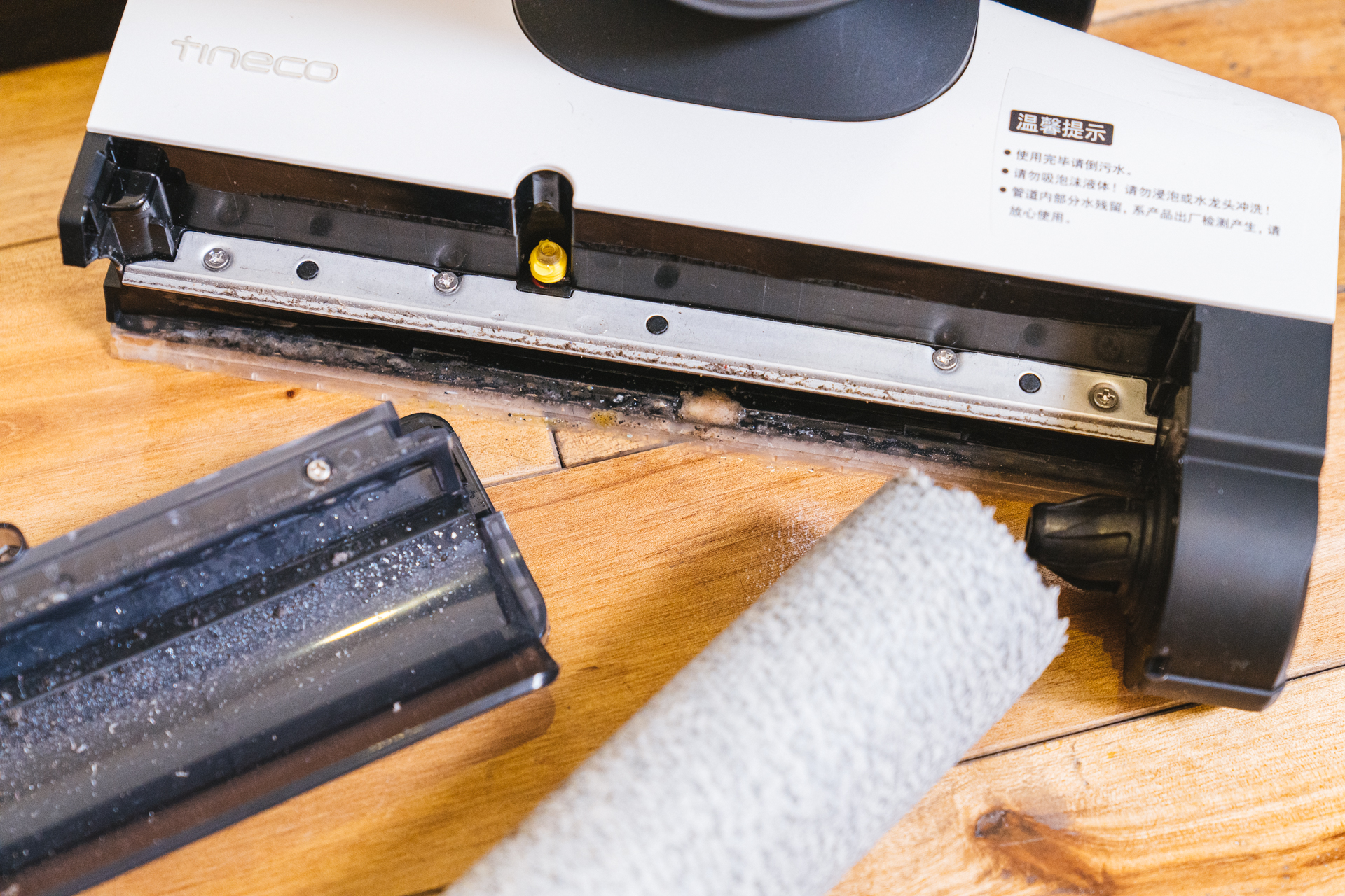 虽然机器可以自清洁,但是日常频繁使用还是需要定期清洁安装滚刷的位置,这些地方还是会有一些顽固污垢隐藏粘附在上面,可以找一块软湿布擦拭清洁,非常的简单。