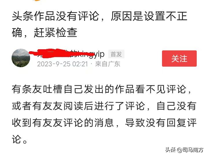 作者的文章题目是这样的:头条作品没有评论,原因是设置不正确,赶紧检查