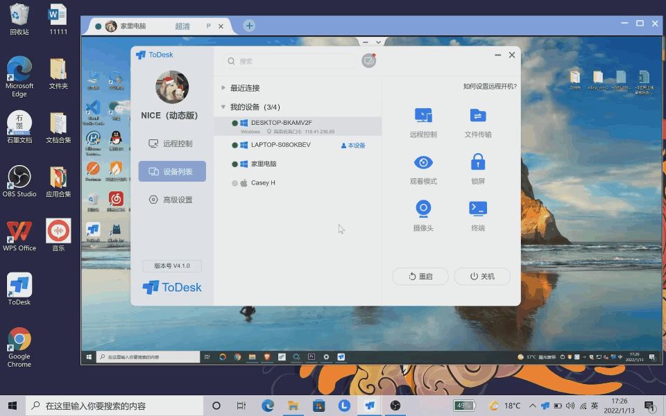 ToDesk是一款多平台远程控制软件。支持Windows、Linux、Mac、Android、iOS跨平台协同操作。具体功能包括远程开关机、录屏、文件传输等。