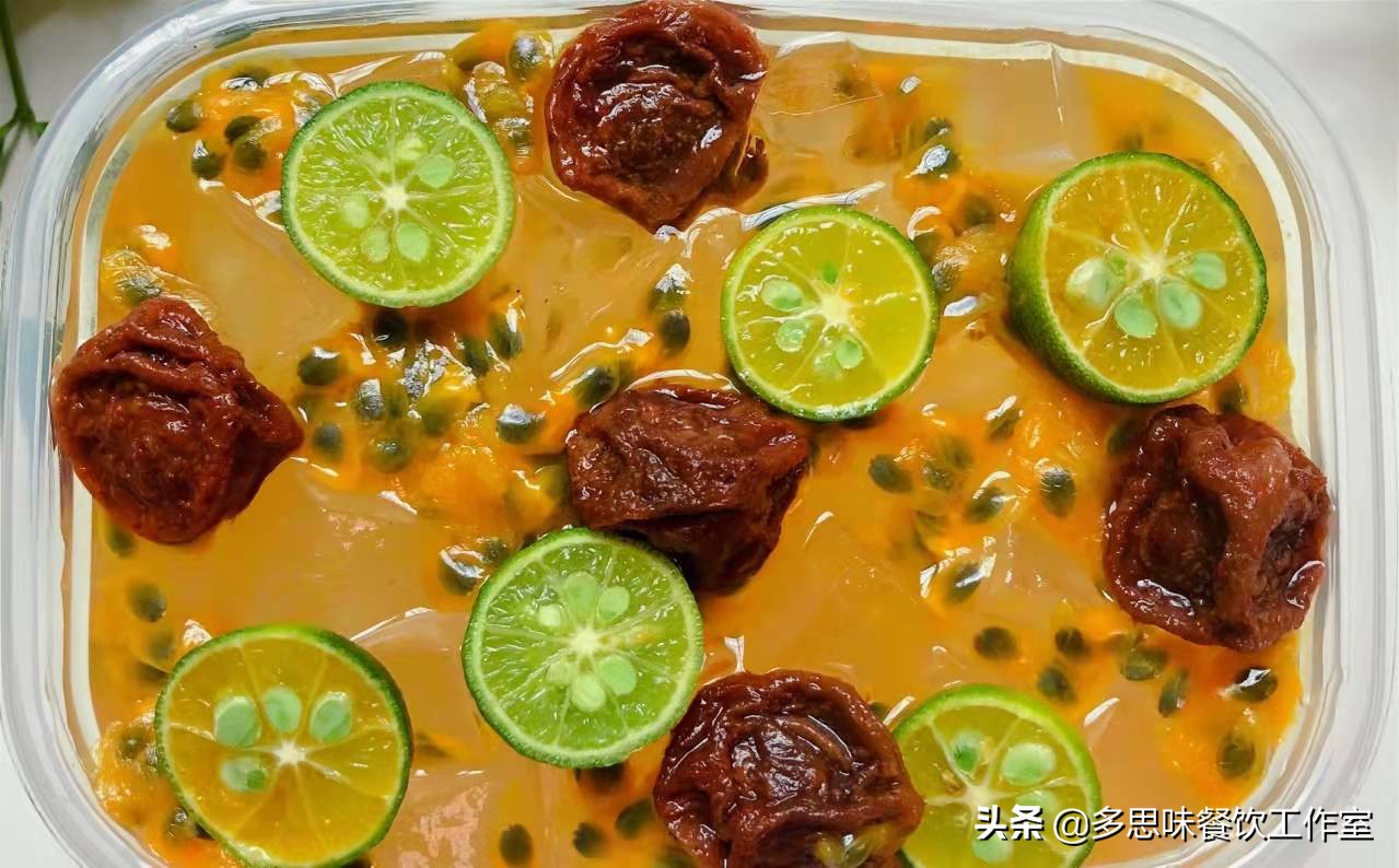清水1000毫升,白凉粉50g,小青柠、百香果、话梅、果糖或蜂蜜