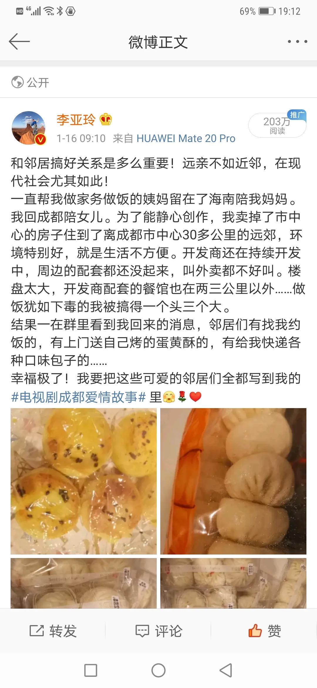 最新一条写我和邻居们的微博,一天多居然有200多万的阅读量。自己搜索了一下,才发现自从2018年3月搬到新小区之后,发了好多和邻居们有关的微博……