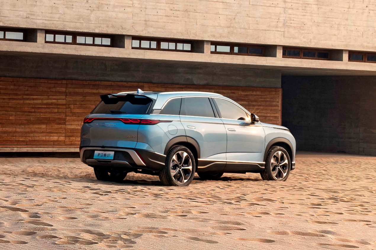 对于大多数消费者来说,选车第一件事肯定是“看脸”。脸吸引不了自己,纵使车辆性价比再高,估计也不会买。在外观设计这件事上,护卫舰07和唐明显就是走着两种截然不同的风格。得益于相对圆润的车身设计,护卫舰07看上去更敦实,但细节的设计又能营造出更加年轻更加科技的感觉。护卫舰07中间的LOGO支持发光功能,开启大灯后辨识度很高,这些想必都是年轻人喜欢的。