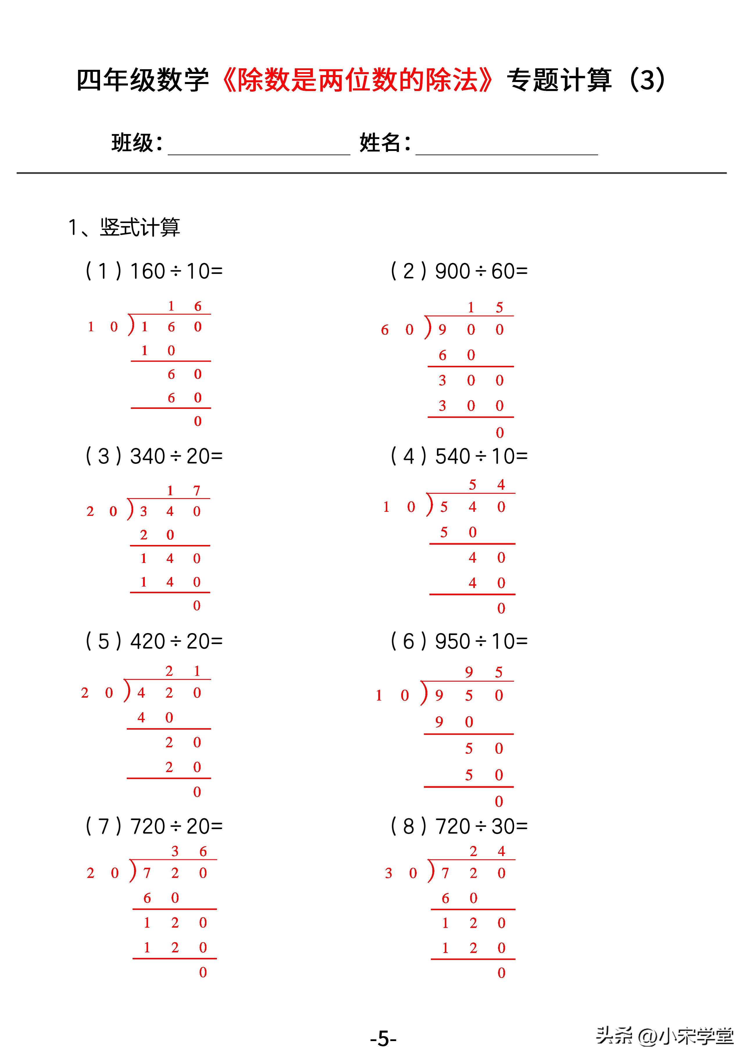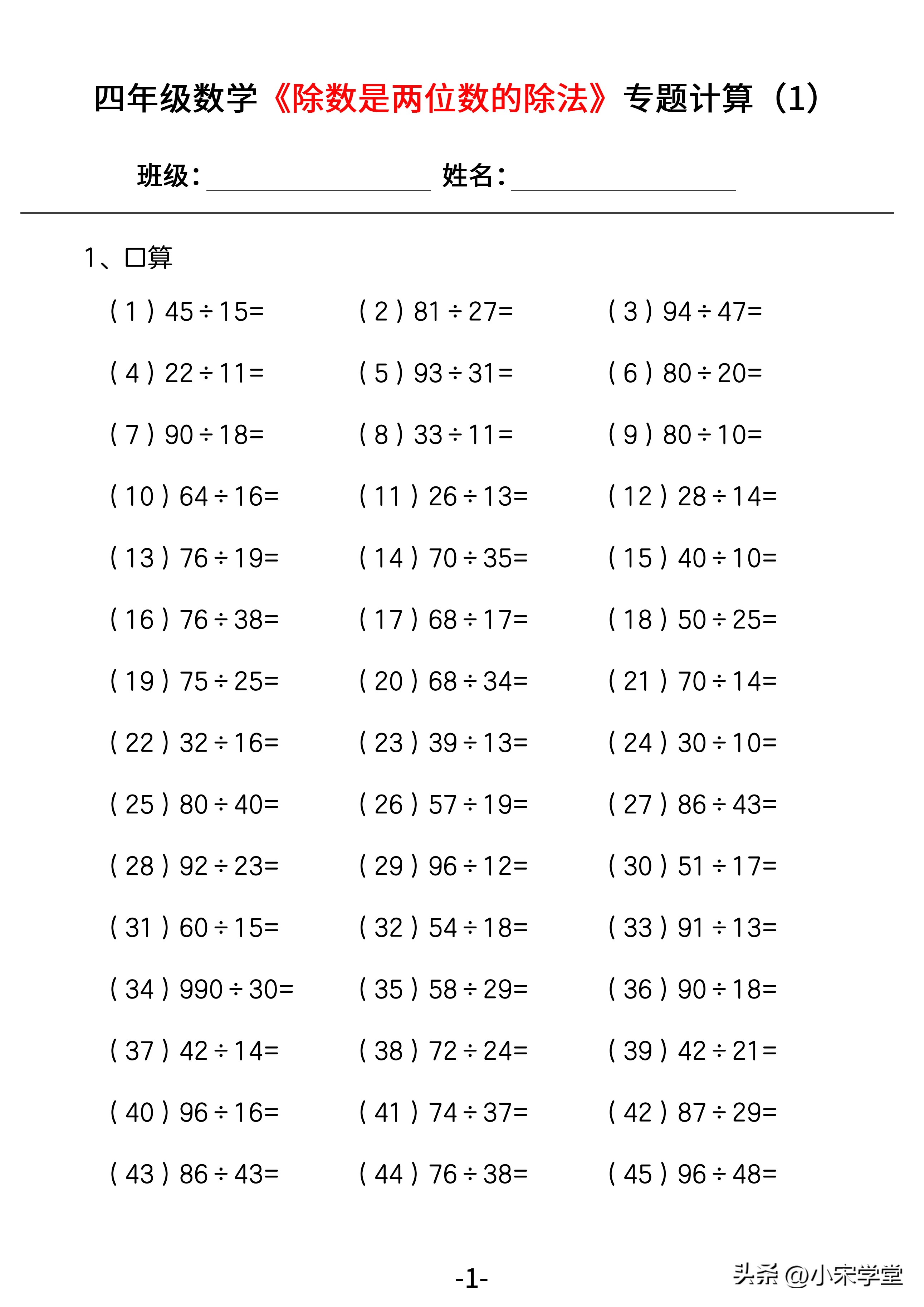 《除数是两位数的除法》--四年级数学重难专题计算,口算脱式竖式
