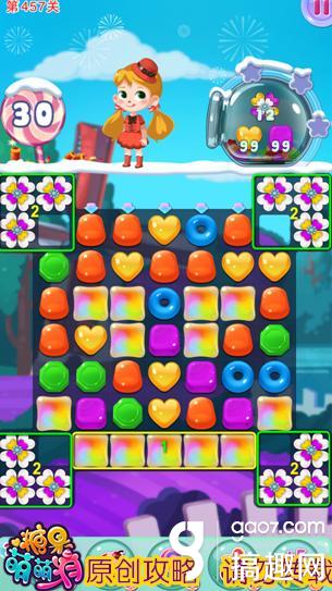 本关任务:收集12朵四叶花,黄色及紫色糖果各99颗