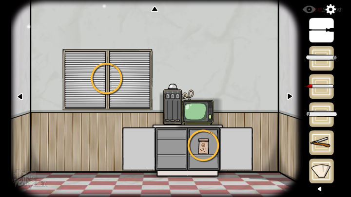 电视机视角:观察左侧的【窗户】,拉开【卷帘窗】能看到左侧的警察和右侧的犯人,拾取【咖啡】