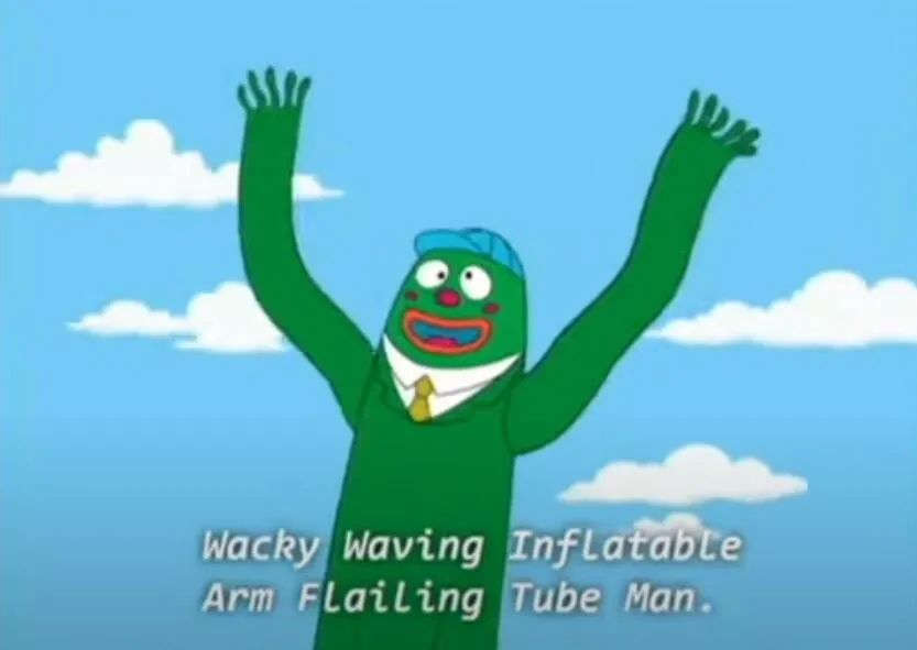 如果你是动画《恶搞之家》的粉丝,那你一定还能一口气说出它最拗口的那个名字:古怪的挥舞手臂的充气式摇摆管人(Wacky Waving Arms Inflatable Flailing Tube Man)。
