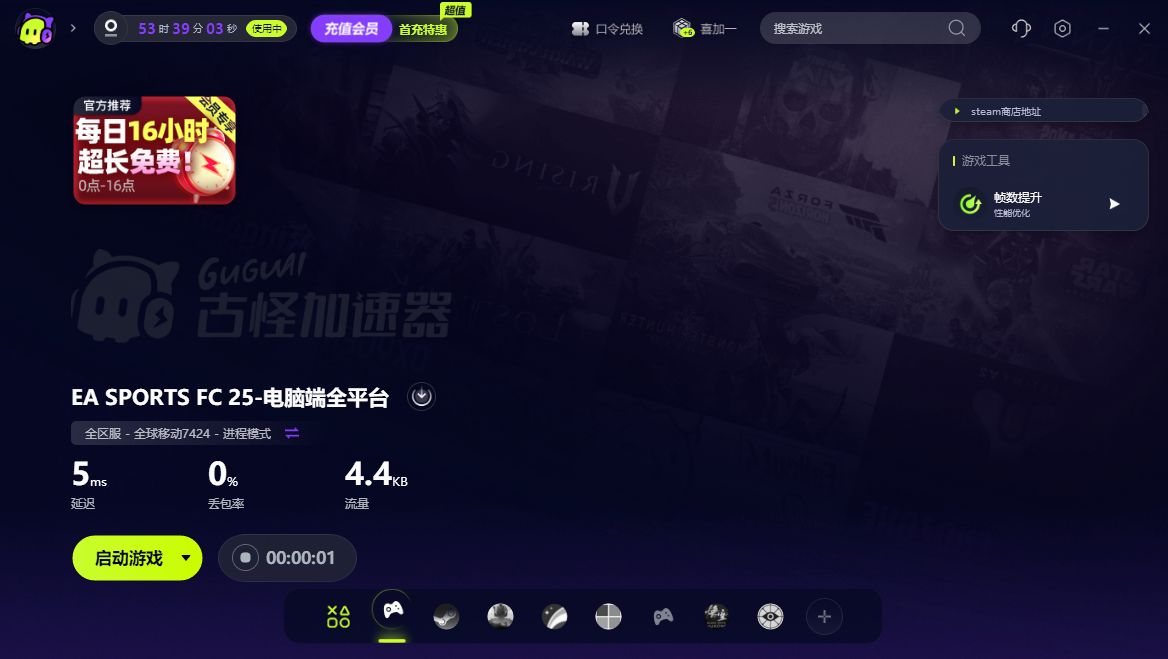 网络连接是玩家与EAFC25服务器沟通的桥梁,任何网络波动或中断都可能导致游戏登录不畅。此时,借助古怪加速器成为了一个行之有效的解决方案。打开加速器,搜索“EAFC25”并添加至加速列表。点击“一键加速”,等待加速器完成优化过程,重新尝试登录EAFC25,此时网络问题应已得到显著改善。