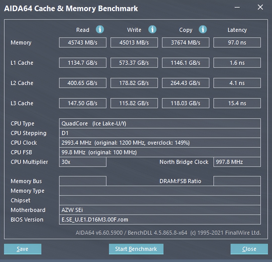 通过 CPU-Z 可以看到,这颗英特尔 1060NG7 处理器跑分单核 415.8,多核 2133.6。