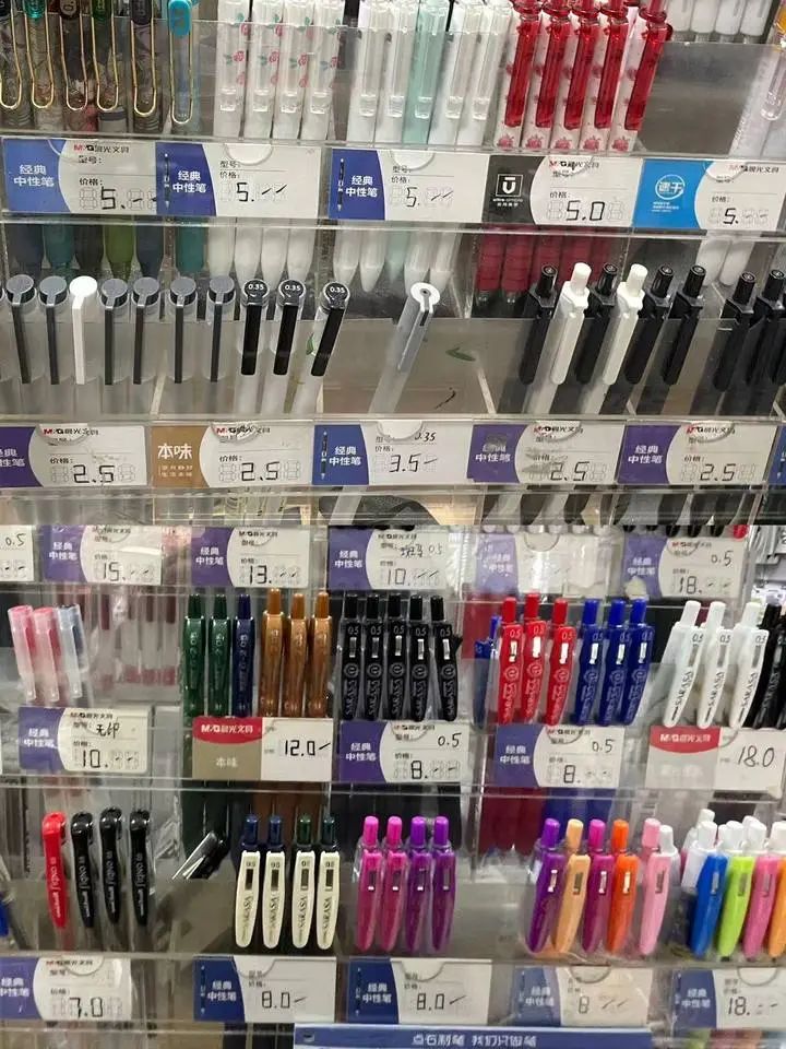 一支盲盒笔价格是3-20元。文具店内,非盲盒笔,也在2-20元不等,不过贵的笔大多为进口产品。