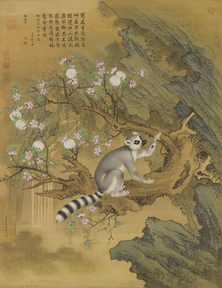 就用郎世宁的这张环尾狐猴图上的乾隆题诗做结尾吧: