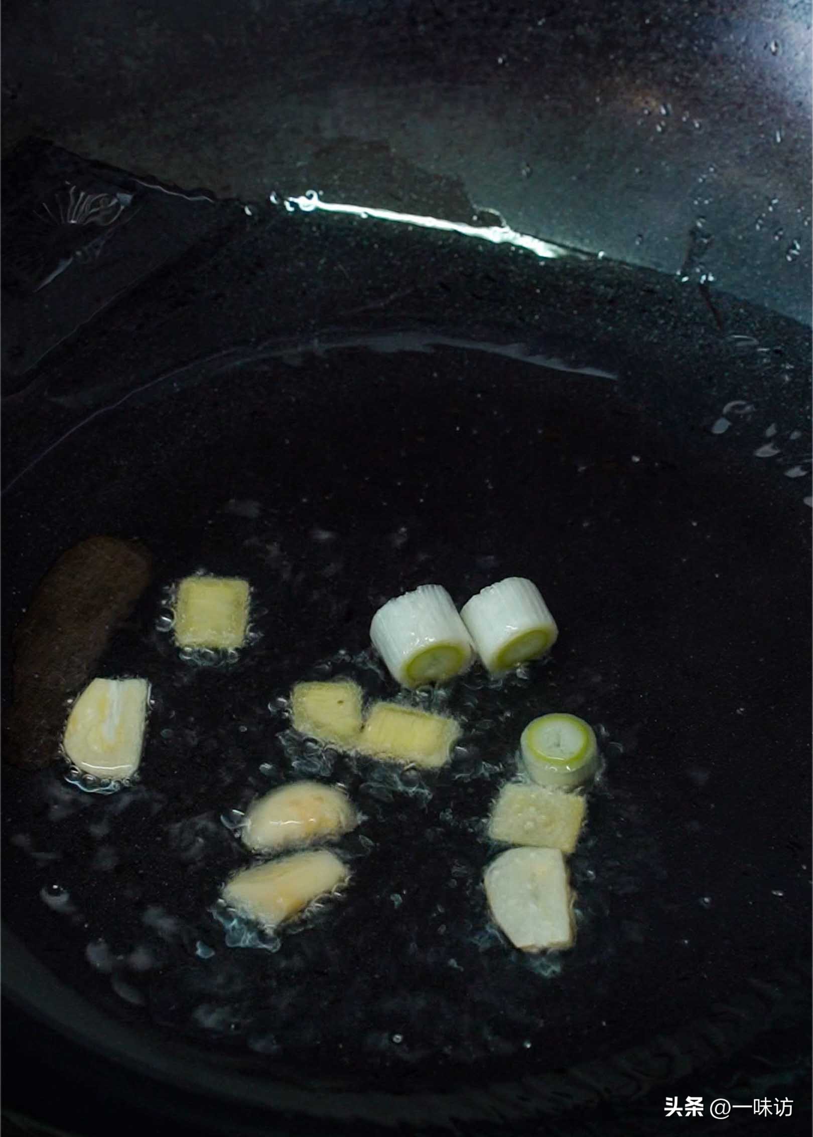 如果想要味道更好建议加压榨花生油,烧热后下入4克姜片和5克葱段煸炒出香味。