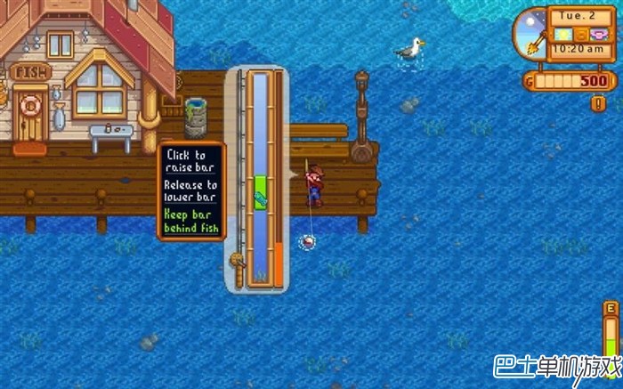 玩家鼠标控制中间的滑块上下,尽量和鱼的图标重合。