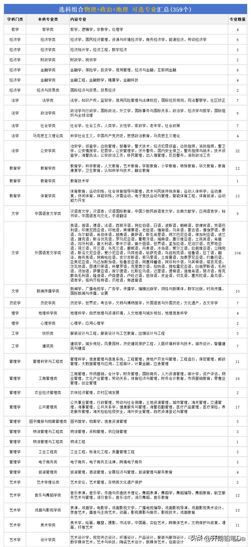 强理科性质的两门学科带了一门强文科性质的学科,思维跨度会大一些。但因为选了政治,专业覆盖率相对纯粹的理科组合会更高,对于报考军校、警校、政法类专业以及未来考公考研,都有很大的优势。(图片可滑动查看)