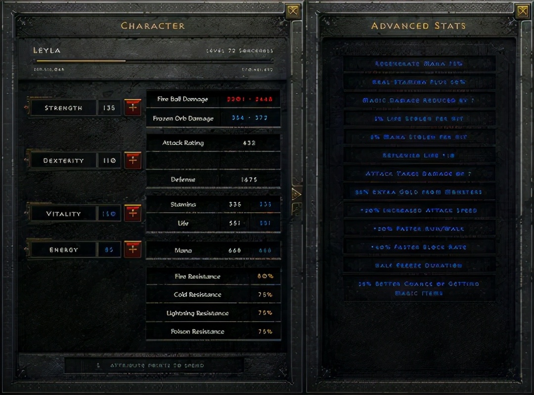 除此之外,暗黑2重制版还承诺会给玩家更多的可视化信息:人物界面可以看到生效词缀的汇总属性列表,装备之间可以一键进行属性比对……
