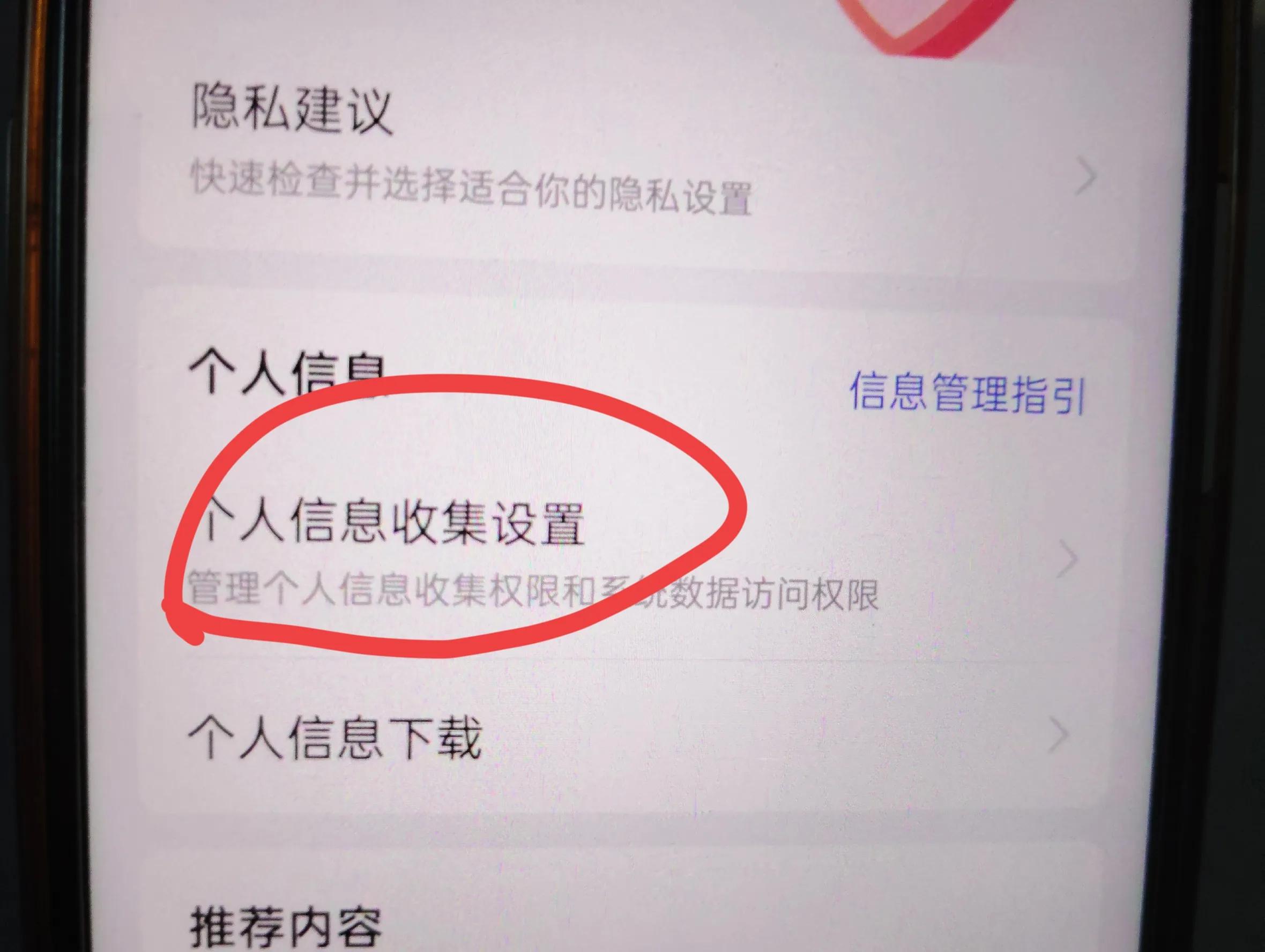 然后,找到个人信息收集设置并打开。(如上图所示)
