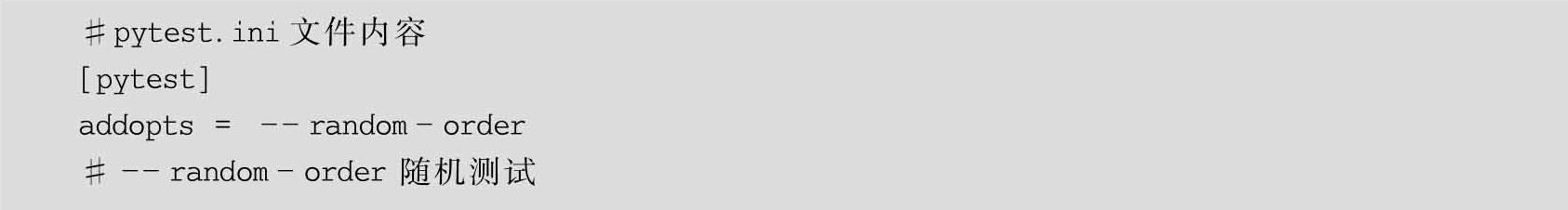如果要始终随机化测试顺序,需配置pytest。有很多种方法可以做到这一点,笔者最喜欢的一种方法是addopts=--random-order,即在pytest选项(通常是[pytest]或[tool:pytest]部分)下添加特定用于项目的配置文件。