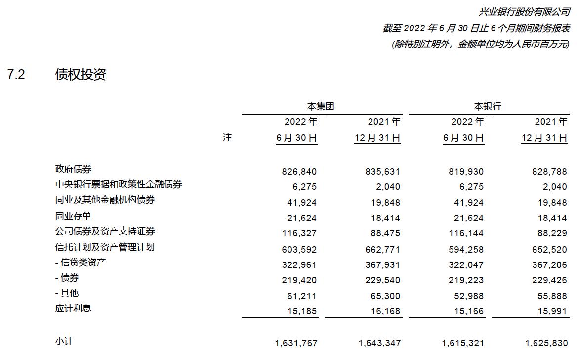 表4-兴业银行2022年中报,其他债权投资