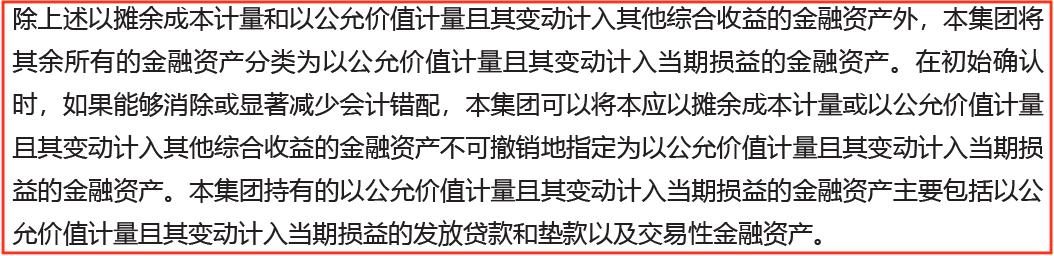 下面图5和图6分别是兴业银行与招商银行财报中关于“以公允价值计量且其变动计入当期损益的金融资产”的定义,用相对通俗的解释就是:准备在合同期到期前出售,以波段操作获取差价为目的的金融资产。