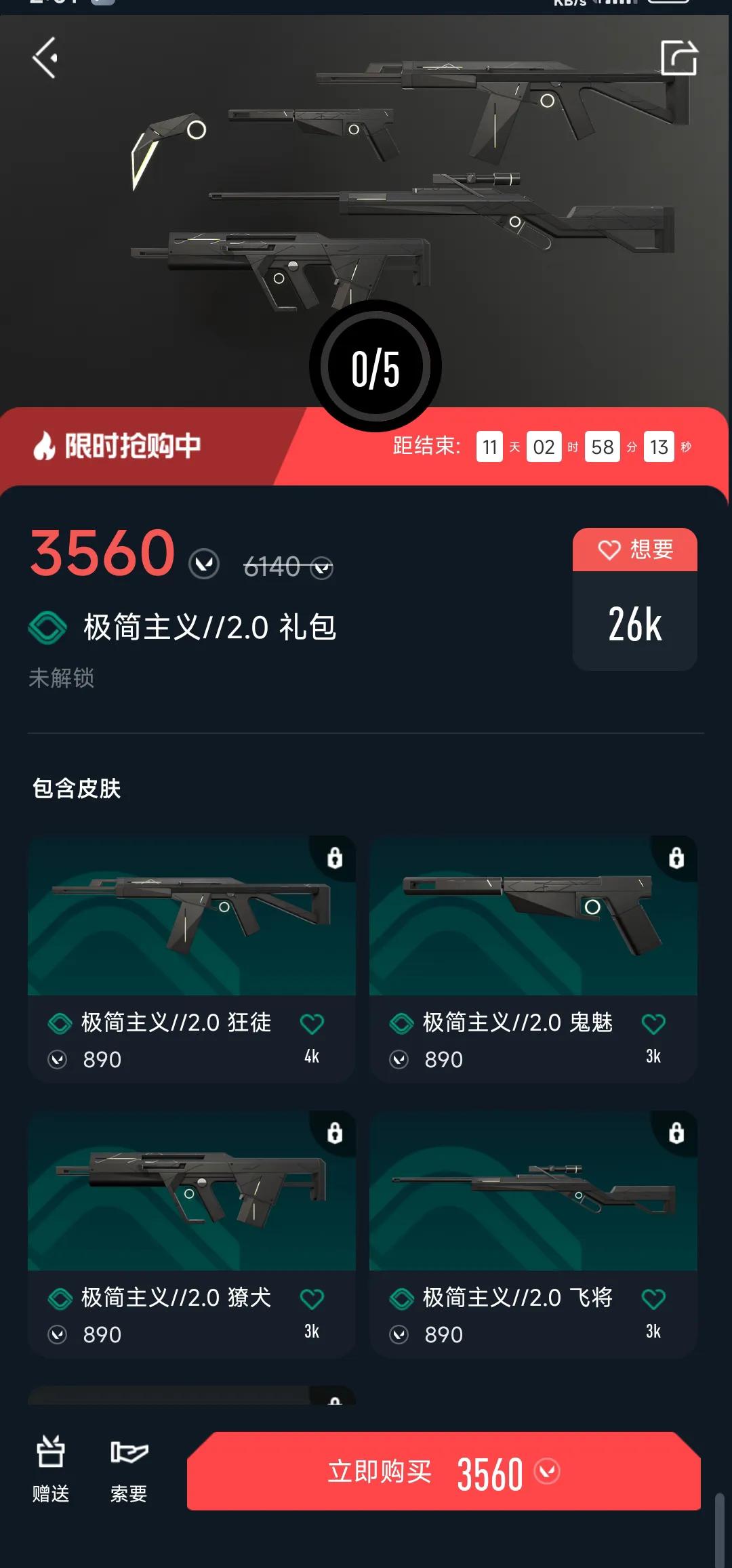 《无畏契约》极简主义系列皮肤以简约纯粹的设计风格著称,主打棱角分明的线条和低调的视觉效果,适合偏好干净利落风格的玩家。该系列包含近战武器爪刀(2580无畏点券)以及狂徒、鬼魅、獠犬、飞将四款枪械皮肤(各890无畏点券),整套售价3560无畏点券(约合356元人民币)。极简主义2.0套装于2025年4月18日上架,5月2日下架,属于豪华级礼包,适合追求纯粹射击体验的玩家。部分玩家反馈其特效较少,但整体设计贴合游戏竞技本质,强调实用性。
