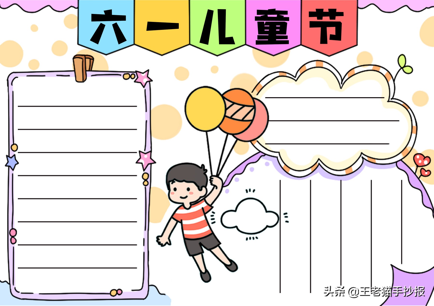 王老猫带着童心与兴趣创作手抄报,希望将简单、美好及更多的爱带给孩子们,在学习文化课同时,多拿起画笔描绘心中美好世界。所有手抄报模板图片均原创,请勿随意转载,感谢家长朋友们支持,愿天下家庭幸福美好!