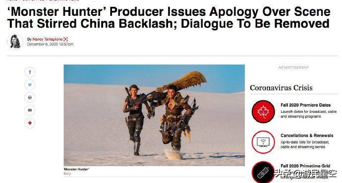 上映一天不到就被下架,《怪物猎人》制作团队终于发文道歉