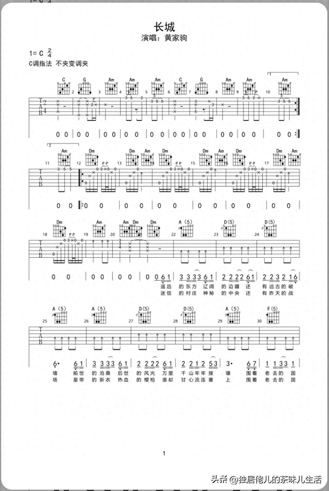 别留遗憾快收藏!网上找不到这首歌了私藏《长城》吉他谱分享