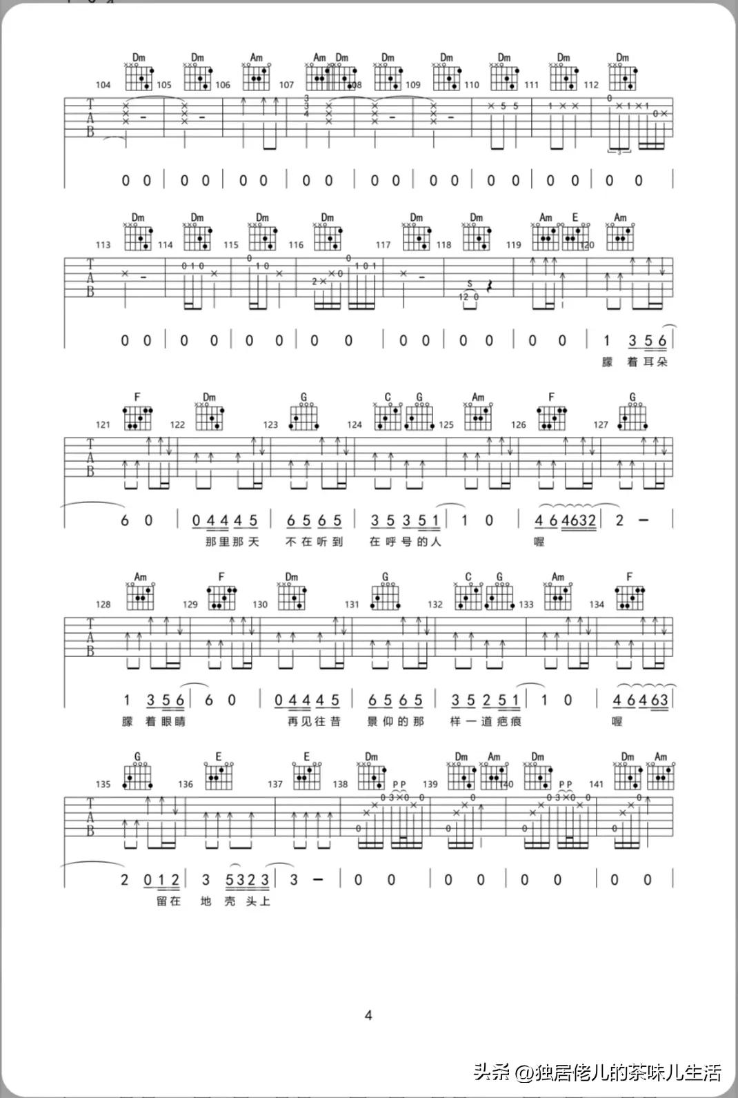 昨天突然想听听,找了半天原唱,不知什么原因二哥这首歌好像找不到了。后来又翻了一下吉他谱,谱子还能找得到,发出来分享给你。