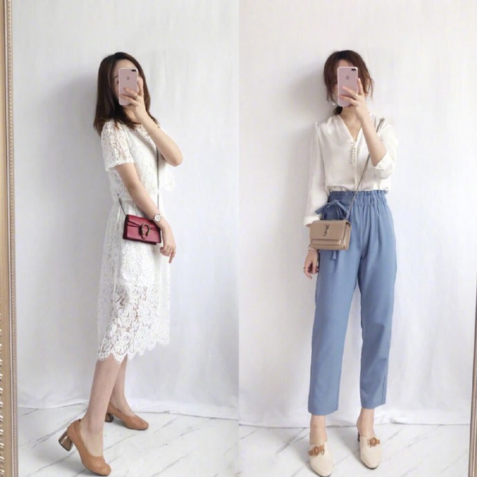 这也算是日常搭配中的基础款式,无论怎么搭都不会出错,喜欢有设计感的小姐姐也可以选择更有个性的衣服来搭配。